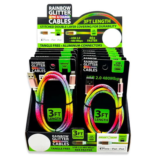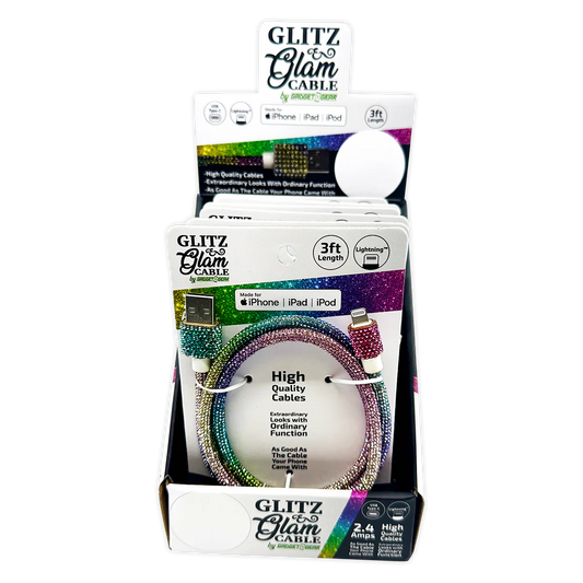 Charging Cable Glitz N Glam Assortment - 6 Pieces Per Retail Ready Display 24130