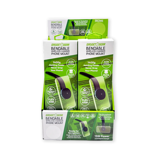 Bendable Wireless Charger Phone Mount 15 Watts - 4 Pieces Per Retail Ready Display 25249