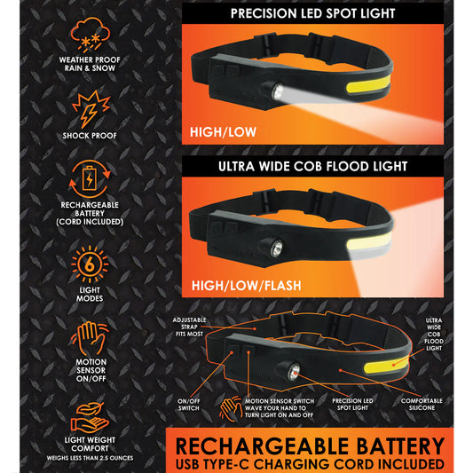 Headlamp Flashlight with Motion Sensor - 4 Pieces Per Retail Ready Display 41671